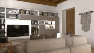 La parete TV è il fulcro della maggior parte dei soggiorni, degna regina di un ambiente dominato insieme a sua maestà il divano. Che si