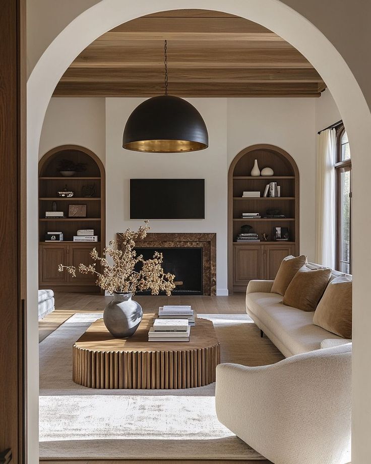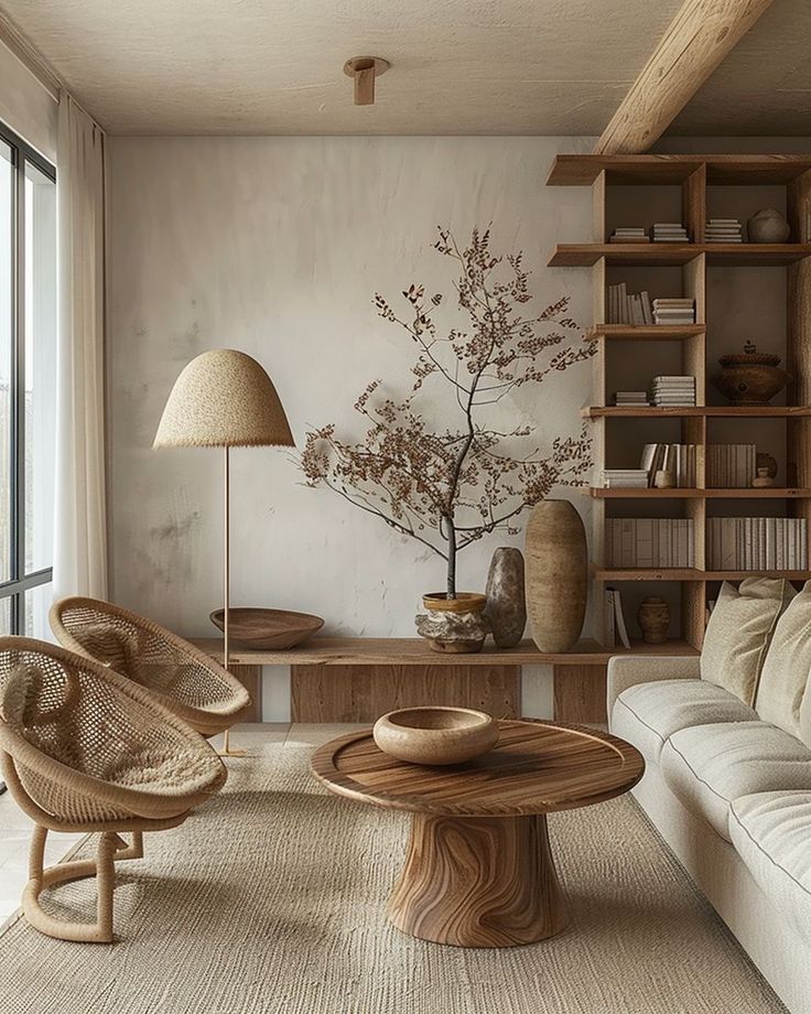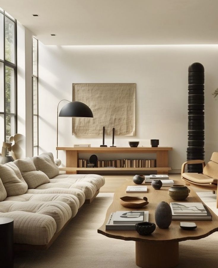 Il soggiorno in stile modern organic è progettato per diventare un rifugio di relax e convivialità.